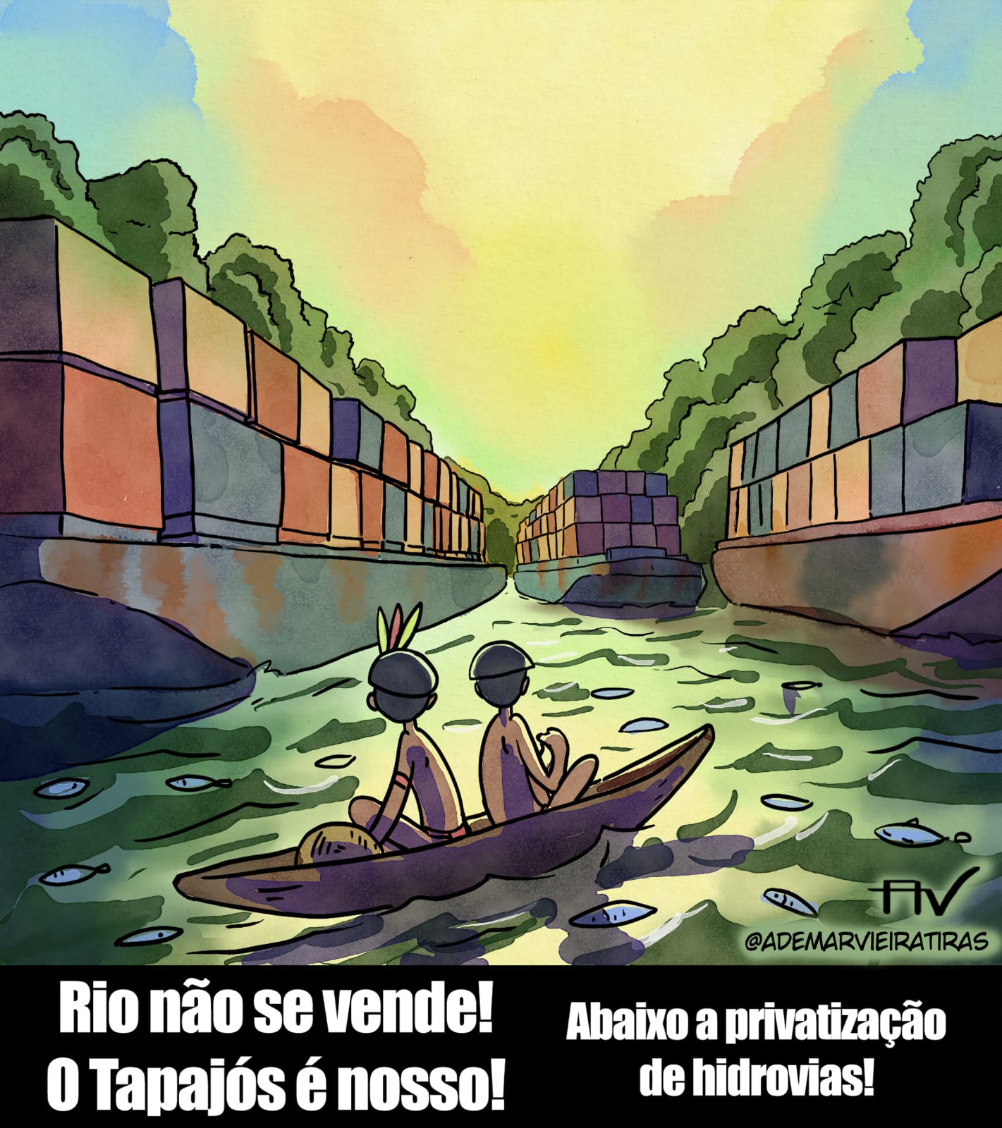 A iniciativa Norte em Quadrinhos organizou uma mobilização artística em defesa do rio Tapajós, da Amazônia e dos povos que vivem em seus territórios. A ação reúne 17 artistas da região Norte que produziram artes-denúncia em apoio à luta iniciada no dia 22 de janeiro, em Santarém (PA), pela revogação do Decreto 12.600/2025, que trata da privatização dos rios Tapajós, Madeira e Tocantins. A mobilização dialoga diretamente com a ocupação realizada na unidade da Cargill, no município, onde povos indígenas, ribeirinhos, ativistas e movimentos sociais reivindicam a revogação da medida.