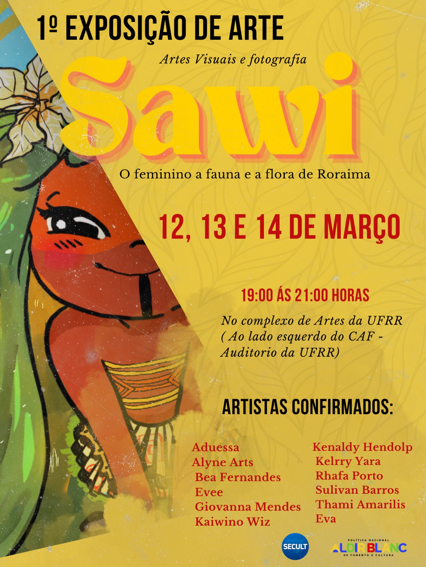 Inspirada na figura mitológica de Sawi (Mãe D’água), a exposição propõe uma experiência imersiva. A personagem, anfitriã do evento, guiará os visitantes por um painel que simula o percurso de um rio, conectando as obras e a ancestralidade do povo Macuxi. Na tradição indígena, Sawi é uma entidade de aparência infantil que protege as crianças e abençoa as gestantes, carregando em sua estética elementos vitais de Roraima, como as águas do Rio Branco e a flor de Puraquê.